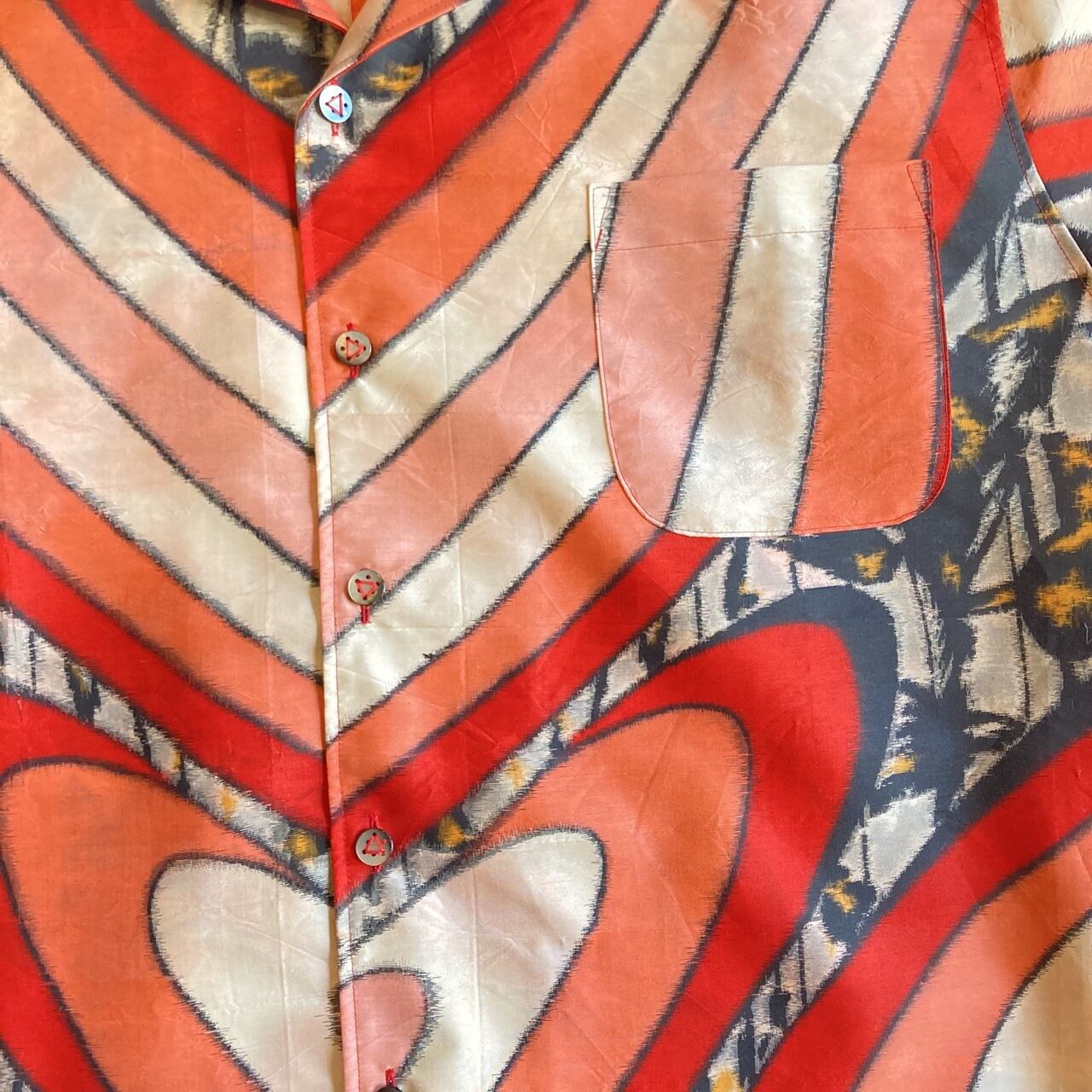 赤とピンクの銘仙還暦アロハです。