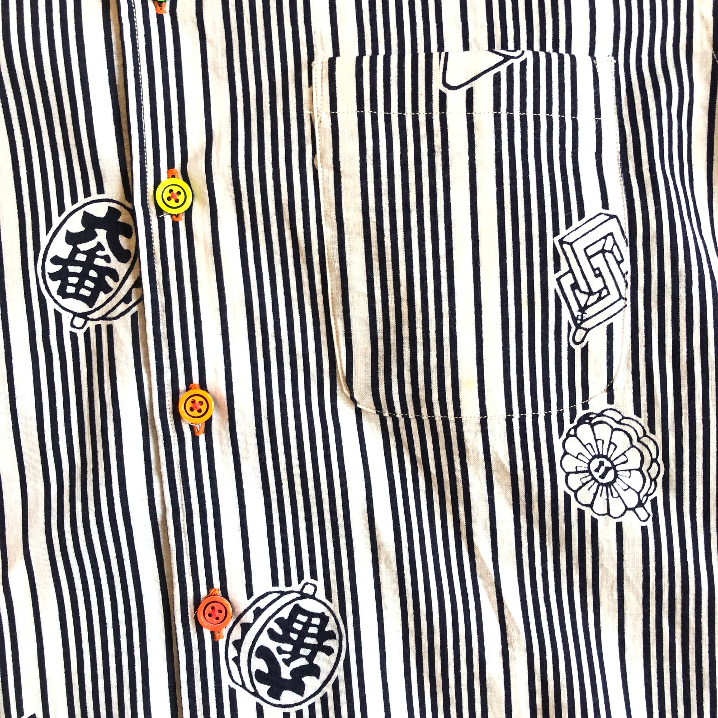 火消の纏と縦縞浴衣地アロハシャツ【S】