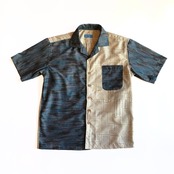 白と青の紬地アロハシャツ【M】