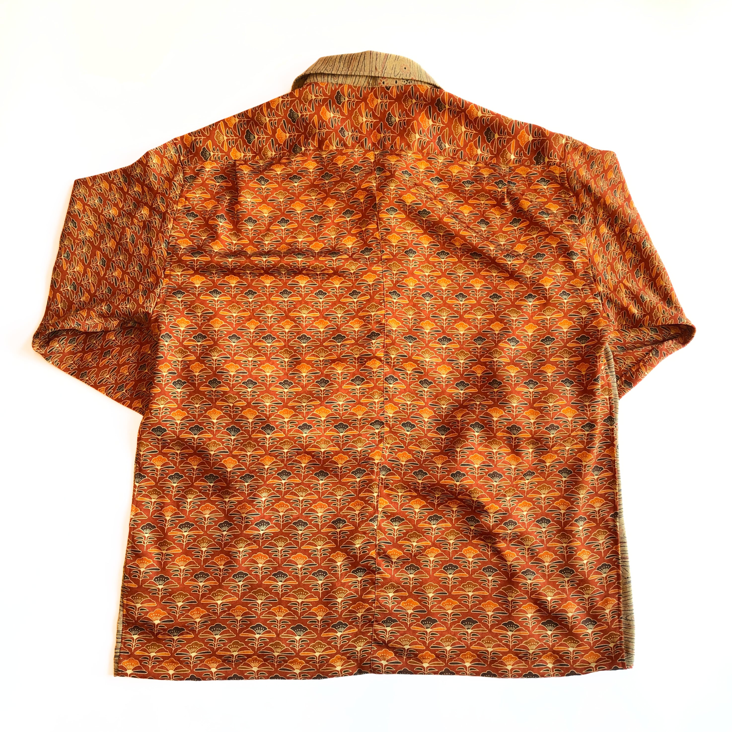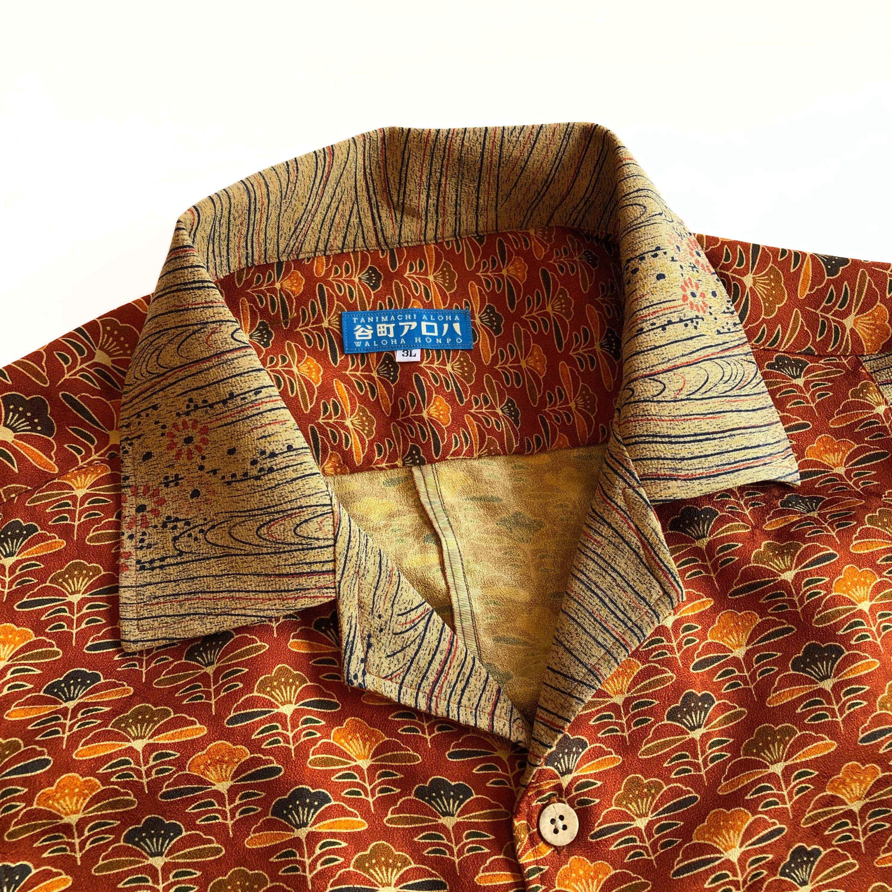赤茶と薄茶の正絹長袖アロハシャツ【3L】